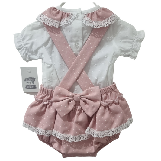 Ninas Y Ninos Spotty Frill Romper & Swissdot Blouse Dusty Pink
