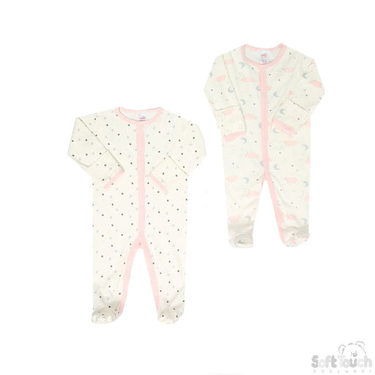 Soft Touch 2 Pack Stars & Clouds Sleepsuit 3 Colours