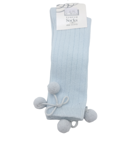 Soft Touch Knee Length Socks with Pom Pom Blue