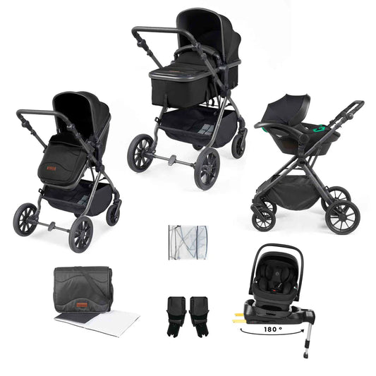 Ickle Bubba Cosmo 9 Piece Travel System Black with i-Size Nimbus 180° Spin Car Seat & ISOFIX Base