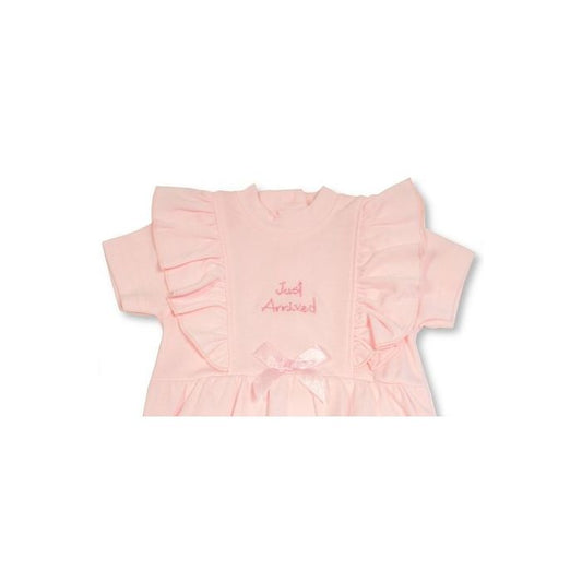 Tiny Chick Premature Just Arrived Frill Romper Pink