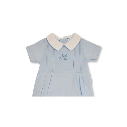 Tiny Chick Premature Just Arrived Collard Romper Blue
