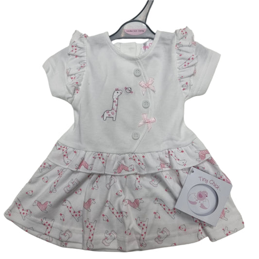 Tiny Chick Premature Baby Girls Dress with Bows - Giraffe