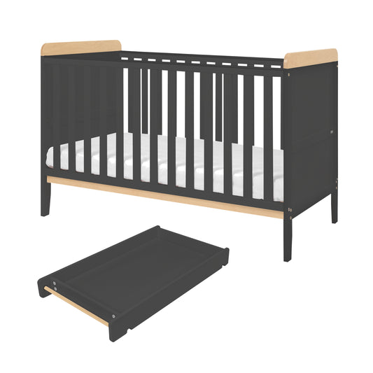 Tutti Bambini Rio Cot Bed with Cot Top Changer & Mattress Slate Grey and Oak