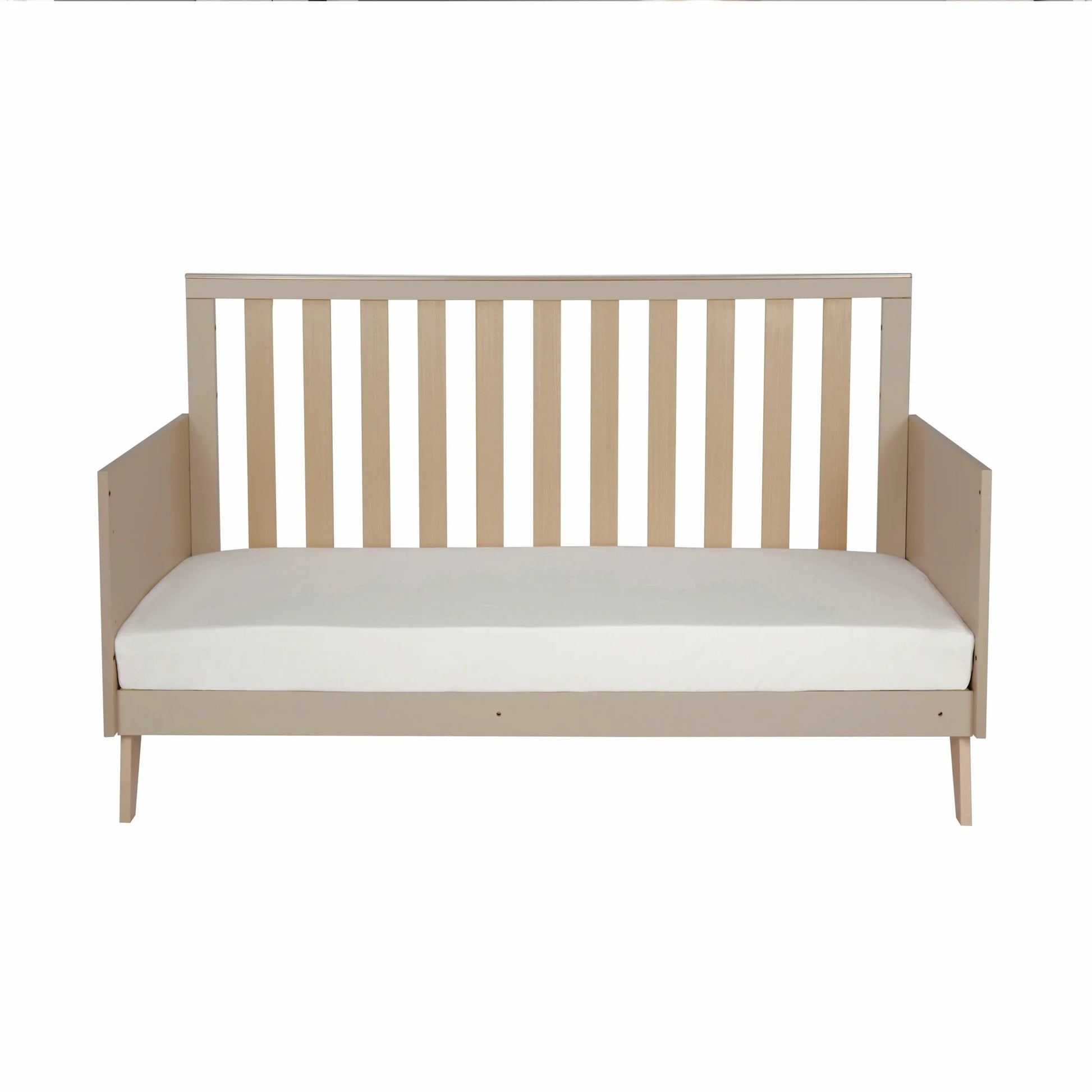 Suitable from birth, the Dante Cot Bed includes three adjustable mattress positions, allowing you to lower the base as your baby becomes more mobile. Teething rails on both sides help protect the wood during those early stages, while the included toddler rails provide added peace of mind when your little one is ready to transition – when the time comes, the Dante easily converts into a stylish toddler bed designed to be enjoyed for years to come.
