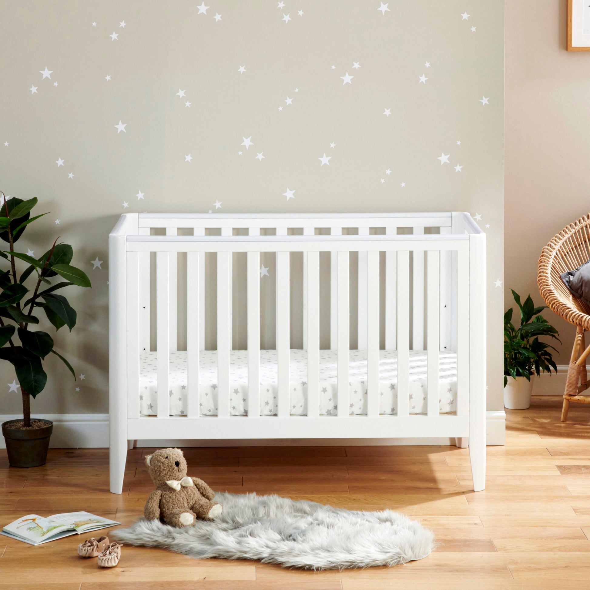 Tapered foot and gently curved corners, this Iris mini cot bed gives off elegantly pared-down Nordic style