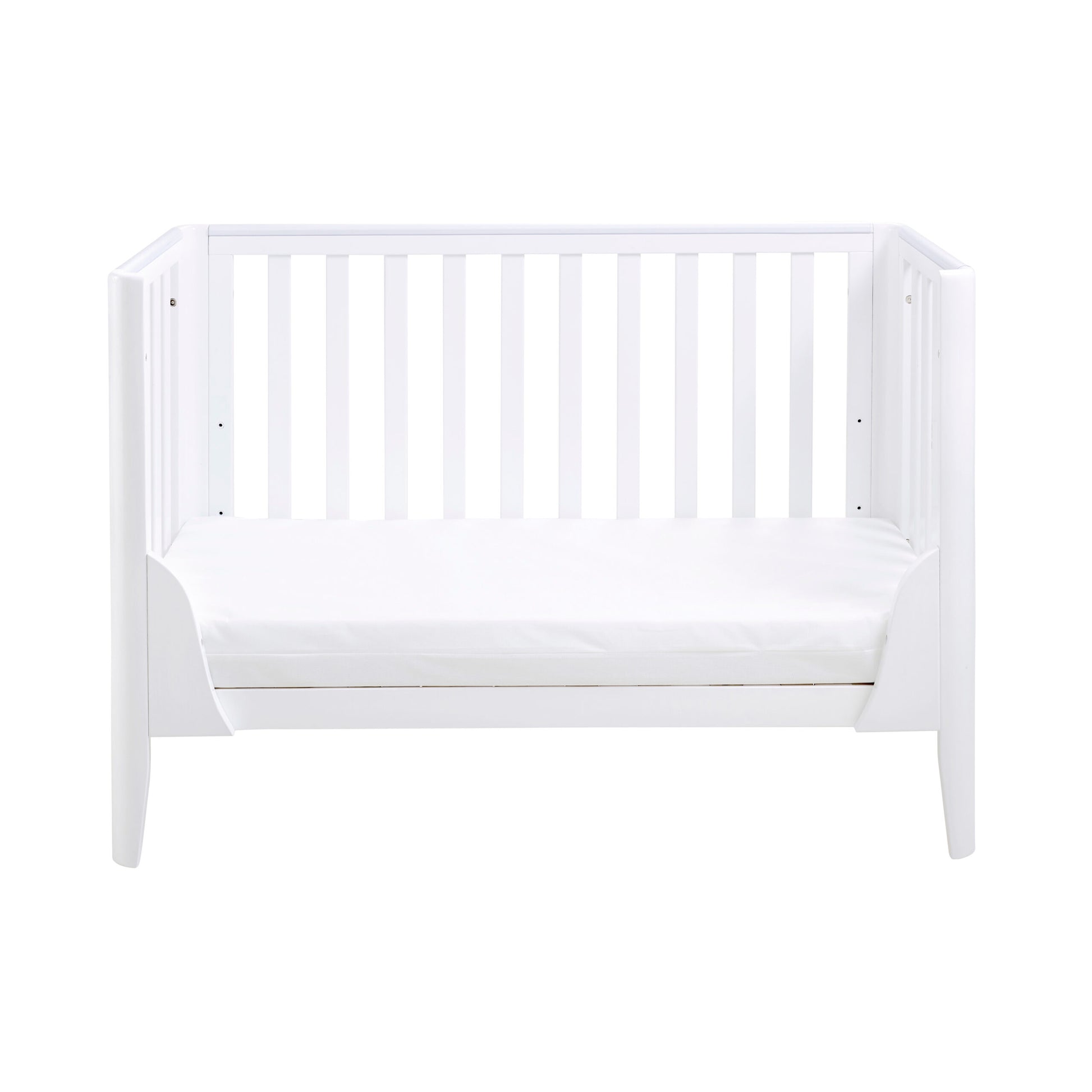 Made of solid pine. The Iris cot bed designed to last from birth until toddler age. 3 mattress base position for optimal sleep positions of early months, convert the cot to bed by remove the side panel, create a perfect toddler bed and a seater.