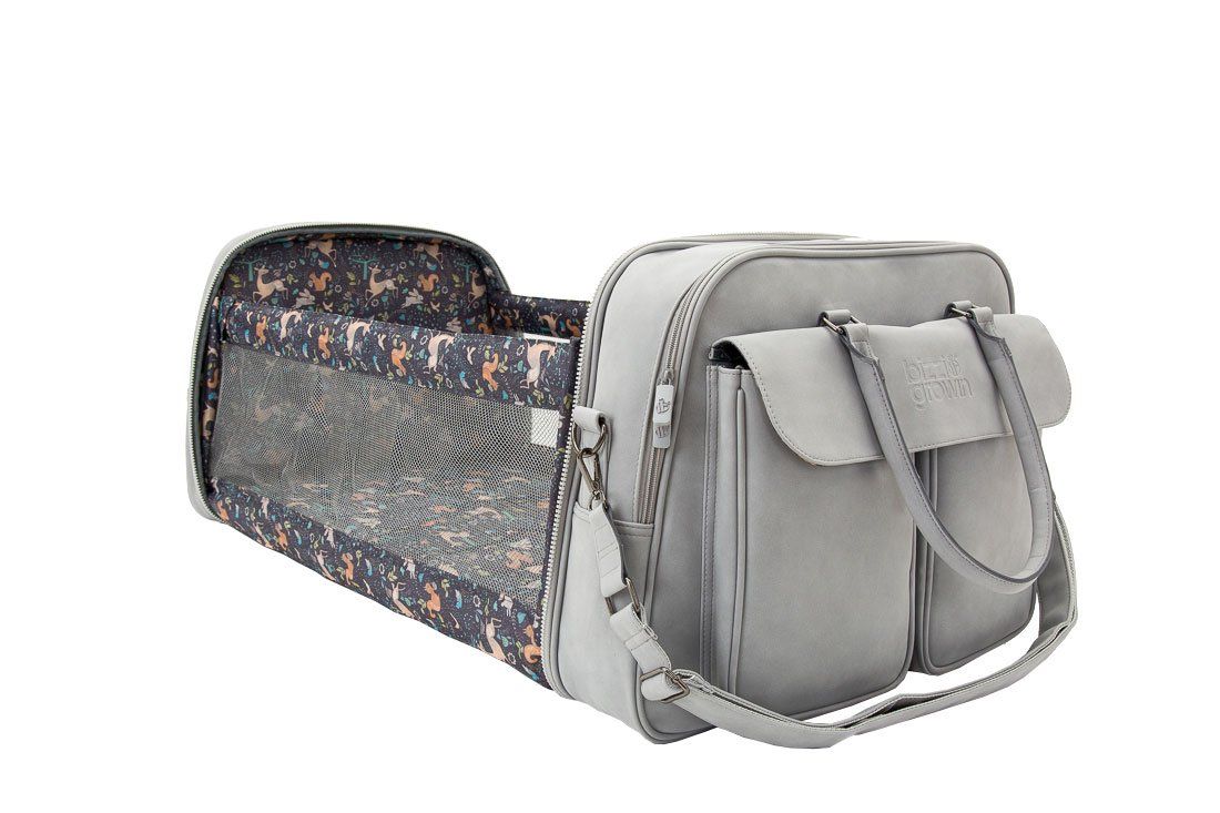 Bizzi Growin Baby Travel Crib Changing Bag - Vegan Leather Whisper Grey - POD