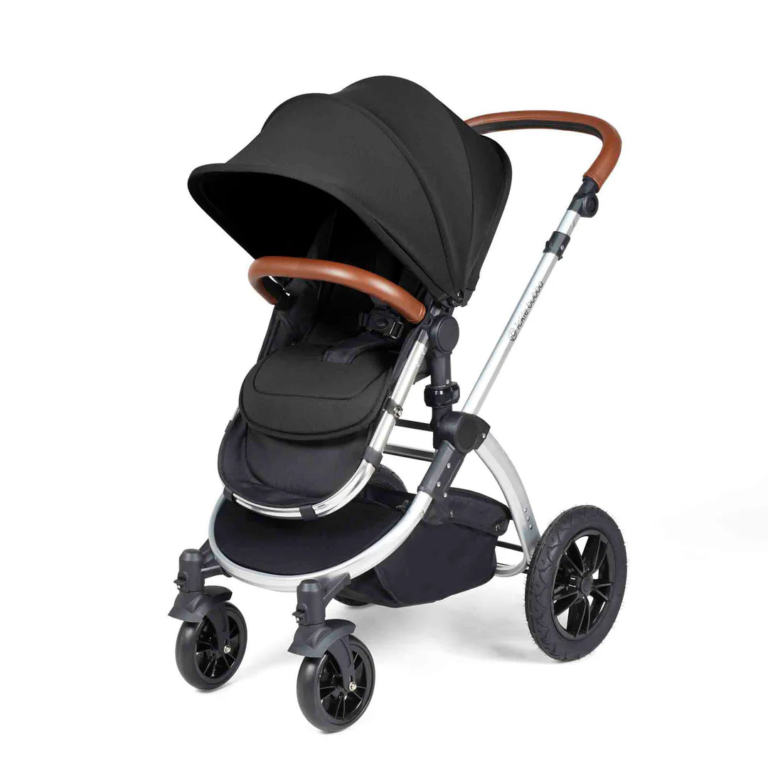 Ickle Bubba Stomp Luxe 12 Piece Travel System with i-Size Nimbus 180° Spin Car Seat & ISOFIX Base Midnight on Silver