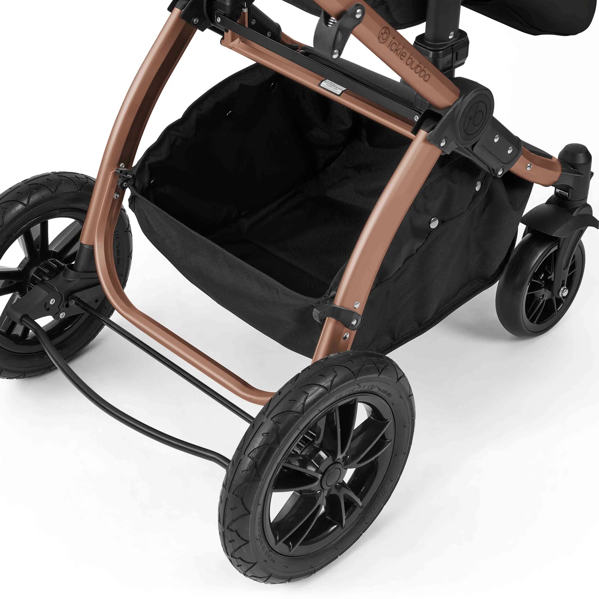 Ickle Bubba Stomp Luxe 12 Piece Travel System with i-Size Nimbus 180° Spin Car Seat & ISOFIX Base Midnight on Bronze